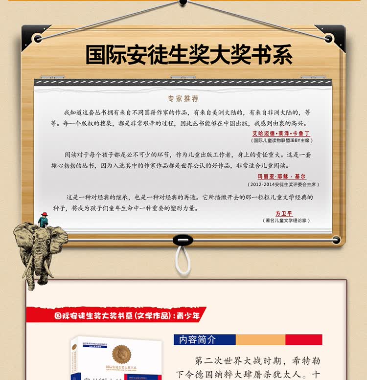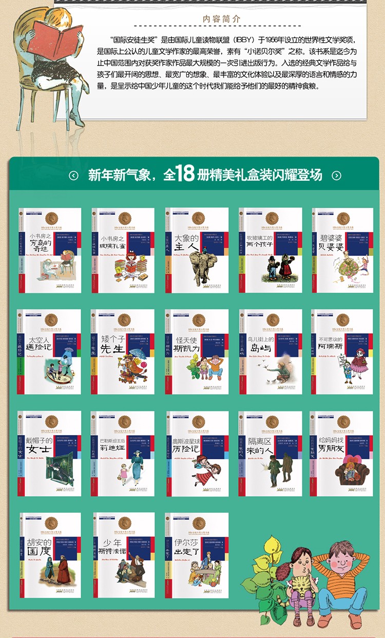 “国际安徒生奖”是由国际儿童读物联盟(IBBY)于1956年设立的世界性文学奖项,是国际上公认的儿童文学界的最高荣誉,素有“小诺贝尔奖”之称。该书系是迄今为止中国范围内对获奖作家作品最大规模的一次引进出版行为。同时,安少社得到该奖项主办方国际儿童读物联盟(IBBY)的官方授权,这在国内尚属首次。