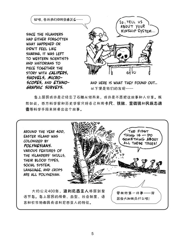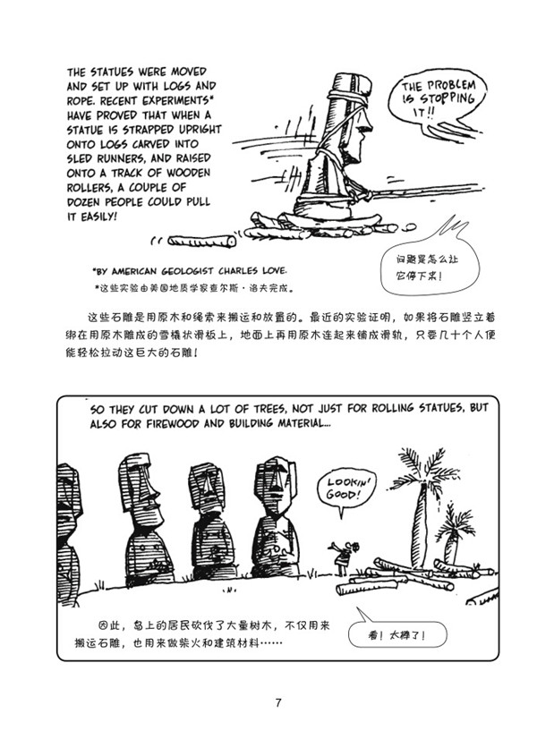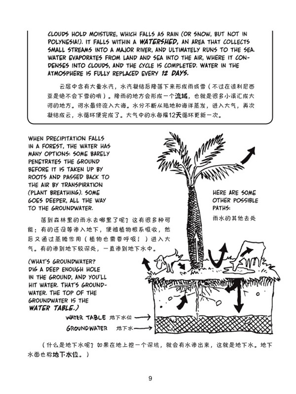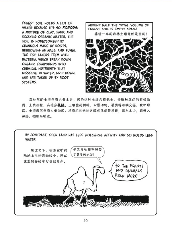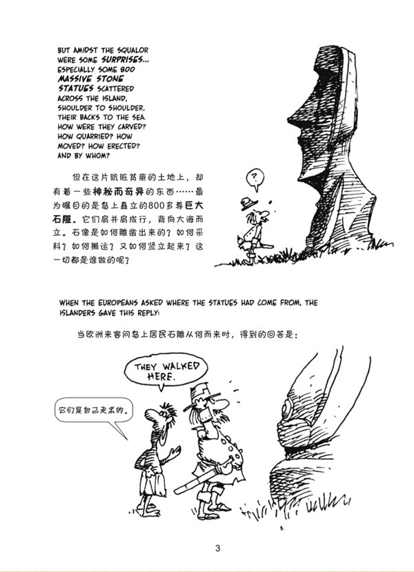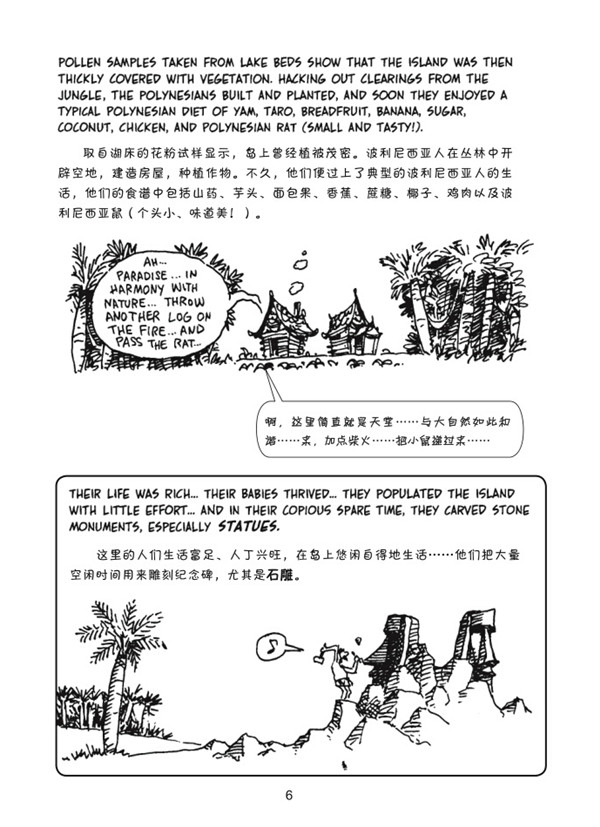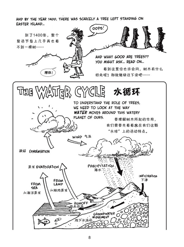 《环保超人》不同于《化学妙想》与《物理探秘》,它的整个感觉更偏重科学人文。虽然书中作者还是一贯的以漫画的形式来科普环境知识,由浅入深的让读者系统的学习环境、生物的内容,但是在学习科学知识的背后,相信读者和编辑一样能够读到本书要传达给我们的迫切的、甚至略微强制性的保护地球的决心和欲望。比如一个细节就是,在作者拉里所画的地球中,从开始郁郁葱葱的强壮有力的地球一直画到被人类毁的千疮百孔无力自己修复的地球,那个可爱的地球如同人类的母亲一样,用自己的奉献满足人类的欲望直到累的自己无力修复,气喘吁吁。地球、生物圈被毁的一片狼藉的时候,人类互相抱怨甚至打斗,可是有没有想过做错的是我们自己啊。书中除了科普,还以一种大度和包容的视角,给读者解释了自然的强大修复力,动物是如何在夹缝中生存等内容。