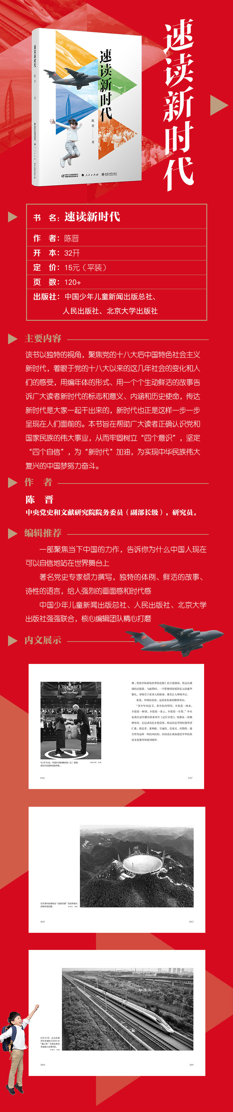 一部聚焦当下中国的力作,告诉你为什么中国人现在可以自信地站在世界舞台上著名党史专家倾力撰写,独特的体例、鲜活的故事、诗性的语言,给人强烈的画面感和时代感中国少年儿童新闻出版总社、人民出版社、北京大学出版社强强联合,核心编辑团队精心打磨
