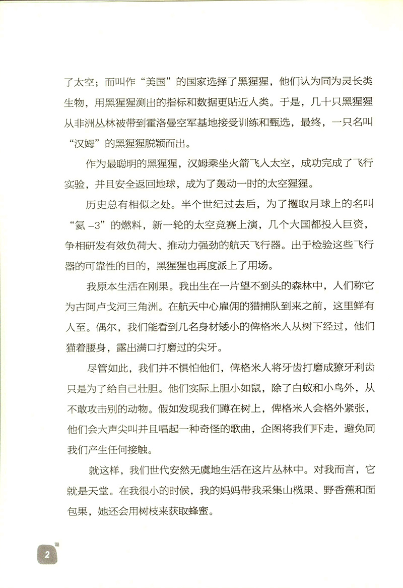 “我来到一个岛,它叫卡加布列岛,有只身穿七彩衣的鸟,对着我微笑。我来到一个岛,它叫卡加布列岛,小黑猩猩很有礼貌,欢迎我来到……”埃莉的歌声还回荡在脑海,不远处就传来惊呼:“当心会唱歌的猩猩,当心它手中有枪!”而我,早已不是那个智力超群的“汉姆二世”……