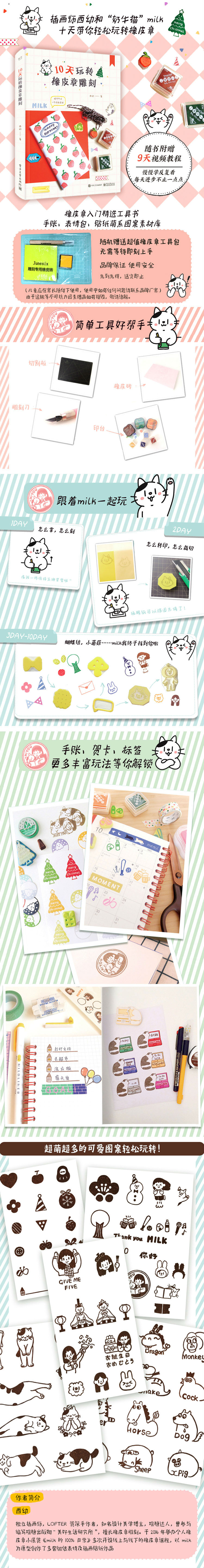 作者邢君,笔名西幼,是独立插画师,LOFTER资深手作者,知名设计美学博主,堆糖达人,曾参与编写堆糖出版物"美好生活研究所”,擅长橡皮章雕刻。于2016年举办个人橡皮章小展览《milk的100%日常》多次开设线上与线下的橡皮章课程,以milk为原型创作了多套微信表情及插画贴纸作品。