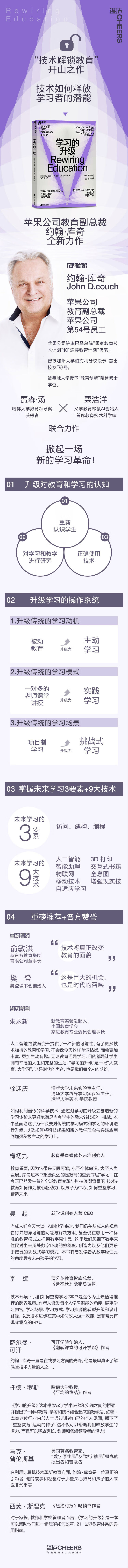 在《学习的升级》一书中,苹果公司教育副总裁约翰·库奇分享了自己50多年的“教育+技术”的跨界研究经验,全面论述了为什么要对传统的学习动机、学习模式、学习场景进行升级,以及如何将科技成果和新的教学理念与实践应用到学习的升级中。