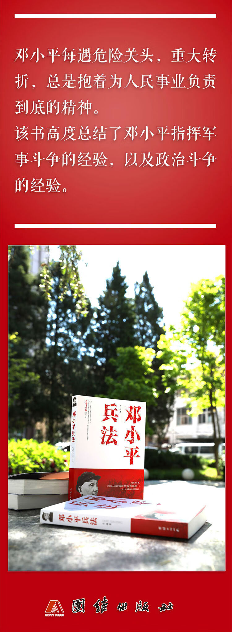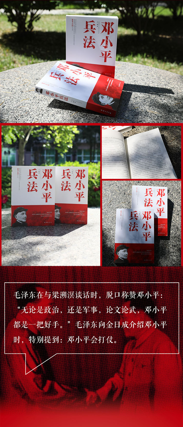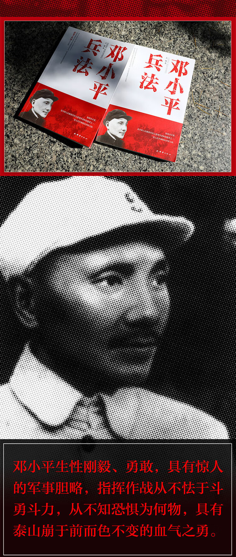 邓小平生性刚毅、勇敢,具有惊人的军事胆略,指挥作战从不怯于斗勇斗力,从不知恐惧为何物,具有泰山崩于前而色不变的血气之勇,领兵打仗讲究“秘密、迅速、坚决、干脆”,其指挥风格堪称勇猛顽强,敢打敢拼,敢与敌人斗勇斗狠。越是大仗、硬仗、恶仗来临,他越是精神百倍,从容镇定。他有一股超凡的硬劲、狠劲,不论面对多少凶恶的敌人,都敢于咬住不放,以己之长,击敌之短。每遇危险关头,重大转折,总是抱着为人民事业负责到底的精神。在长达 50 多年的革命生涯中,积累的经验最丰富、最全面,该书高度总结了邓小平指挥军事斗争的经验,以及政治斗争的经验。