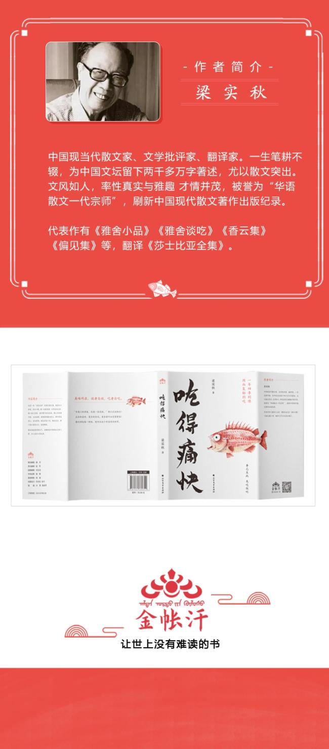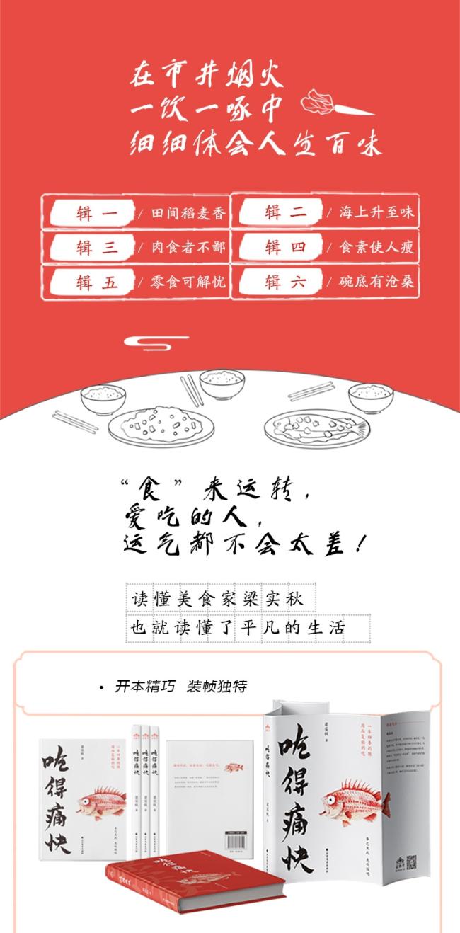 《吃得痛快》是一本“活色生香”的梁氏散文集,收录七十余篇,共分六辑。辑一稻麦香甜,日常米面主食;辑二海上至味,鱼虾蟹贝纷至沓来;辑三肉食者不鄙,大快朵颐、精嚼慢咽兼而有之;辑四素菜清心,淡而有味;辑五零食小吃,解忧自在;辑六指点美食江山,通透雅致。