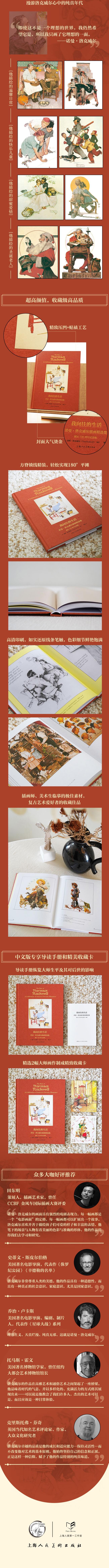 洛克威尔是一位高产的艺术家,一生创作了4000余幅优秀画作。洛克威尔始终坚持“按照自己喜欢的方式描绘生活”,他通过画作歌颂普通人的日常生活,作品中独特的美好与纯真感动了数百万人。这本插画集是洛克威尔的儿子汤姆精选出其150幅最为精美的画作汇集而成的,包括100幅经典代表作和50幅此前从未面世的珍贵手稿。翻开画集,我们仿佛身临洛克威尔所处的时代,一幅幅鲜活的生活图景在我们面前徐徐展开。这些作品中细腻写实的故事表现力和扣人心弦的画面张力,充分展现了洛克威尔的精湛画技和匠心巧思,也奠定了其家喻户晓的美国国民插画家地位。