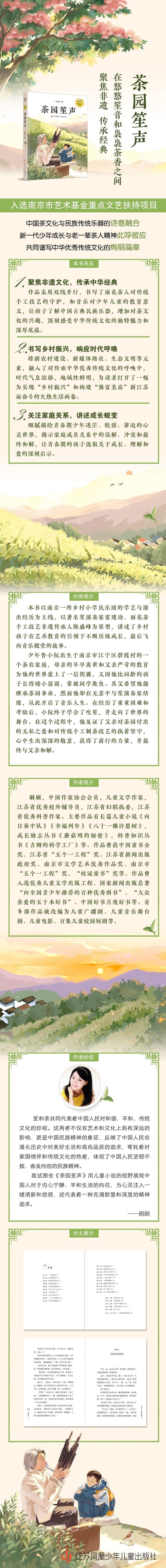 本书以南京一所乡村小学民乐团的学艺与演出经历为主线,以 笙演奏家雷建功、雨花茶手工技艺非遗传承人陈盛峰为原型,讲述了乡村孩子在艺术教育的 下不断历练成长,飞向音乐殿堂的故事。 少年鲁小阮出生于南京市江宁区碧霞村的一个茶农家庭,母亲的早早离世和父亲严苛的教育为他的世界蒙上了一层阴霾,又因他比同龄的孩子长得矮小孱弱,常被同学欺负。其父希望他能继承茶园事业,然而他却在无意中与笙演奏家结缘,从此开启了音乐人生。在经历了重重困难和考验后,小阮终于学会了吹笙,并走向了世界的舞台。在这个过程中,他见证了父亲对茶园付出的无私之爱和对传统手工制茶技艺的执着坚守,心中生出深深的敬意,获得了前行的力量,并 终与父亲和解。