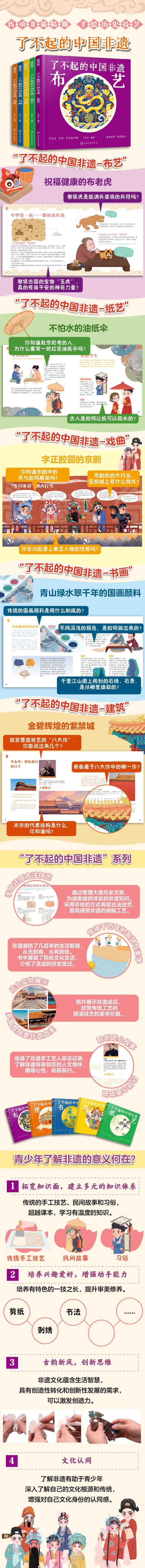 “了不起的中国非遗”系列包含了5本,分别介绍了布艺、纸艺、建筑、书画和戏曲这5大主题的非遗项目共24项。书中以非遗档案做引,从历史流派、民俗文化、制作技艺和作品赏析等几方面对每项非遗技艺进行了深入简出地介绍。其中,作者查阅近百篇历史文献,还原了非遗的古法技艺,通过手绘图的方式为读者展现了传统技艺的细节。此外,书中还特设了非遗手艺人的采访记录,给孩子有温度的知识。