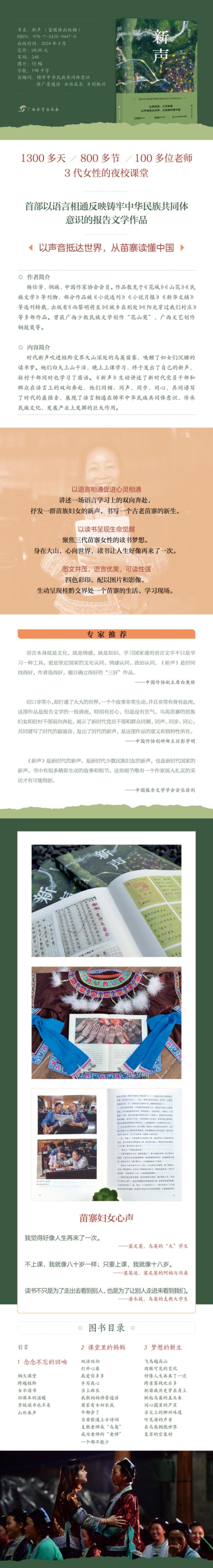 ◎以语言相通促进心灵相通 讲述一场语言学习上的双向奔赴,抒发一群苗族妇女的新声,书写一个古老苗寨的新生。 ◎以读书呈现生命觉醒 聚焦三代苗寨女性的读书梦想。身在大山,心向世界,读书让人生好像再来了一次。 ◎图文并茂,语言优美,可读性强 四色彩印,配以图片和影像,生动呈现桂黔交界一个苗寨的生活、学习现场。